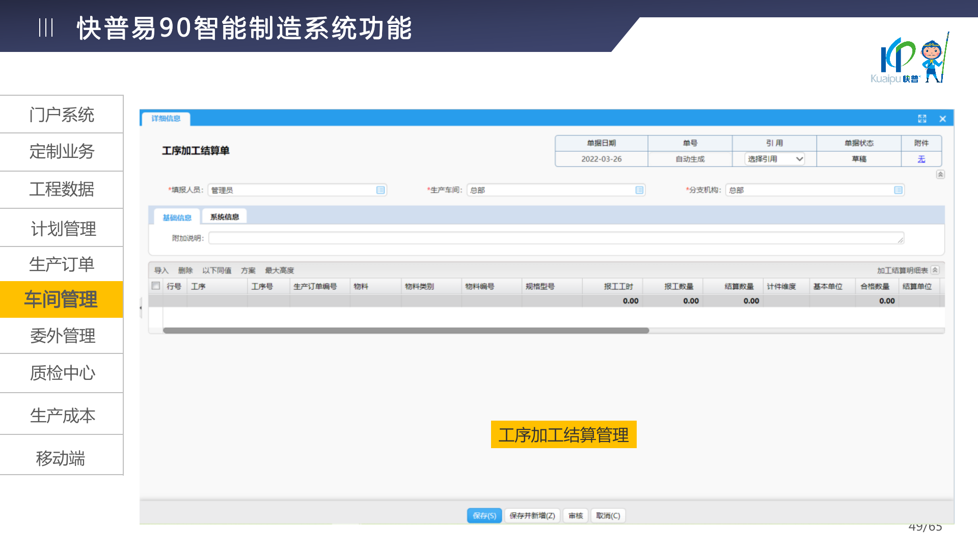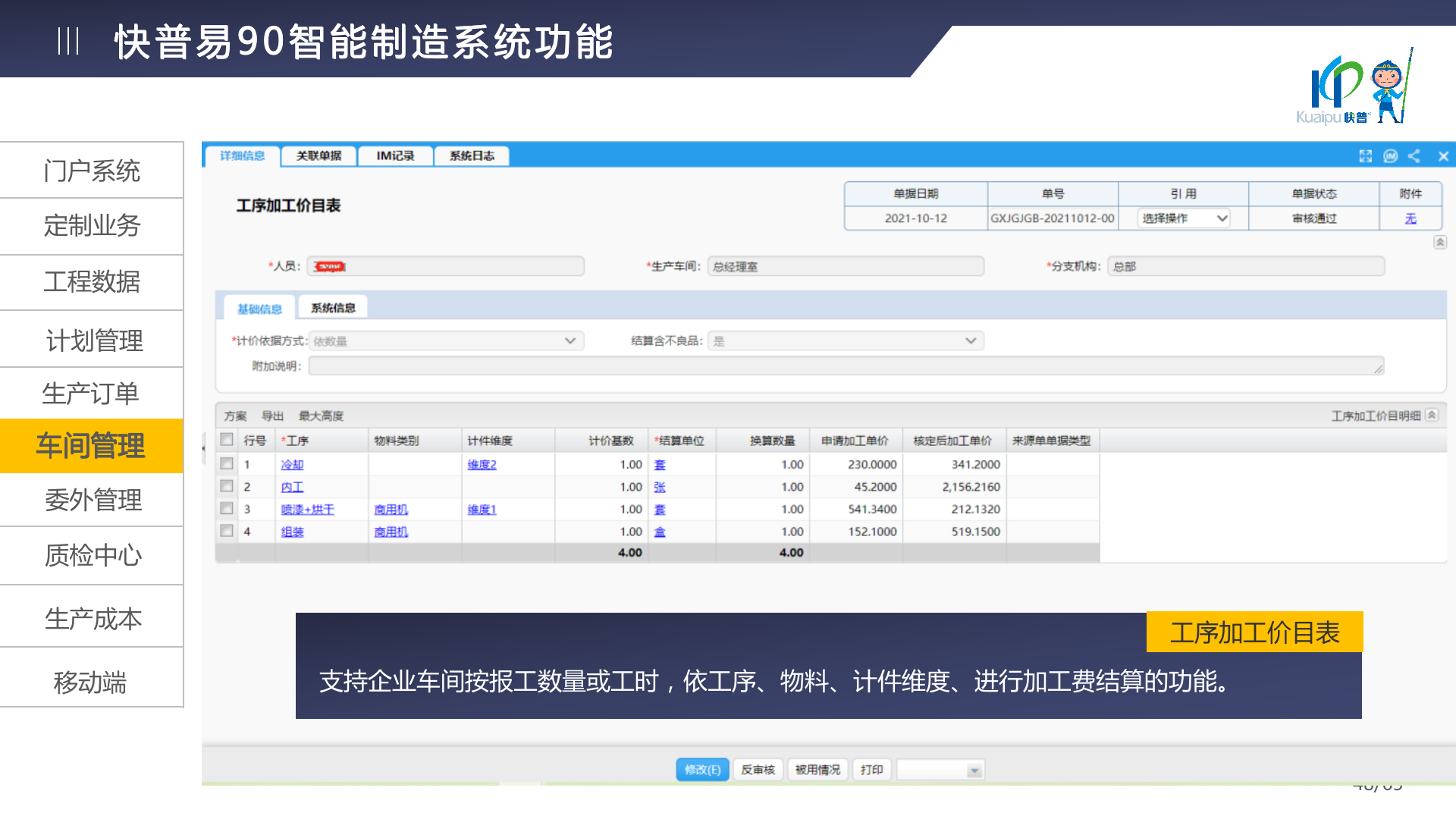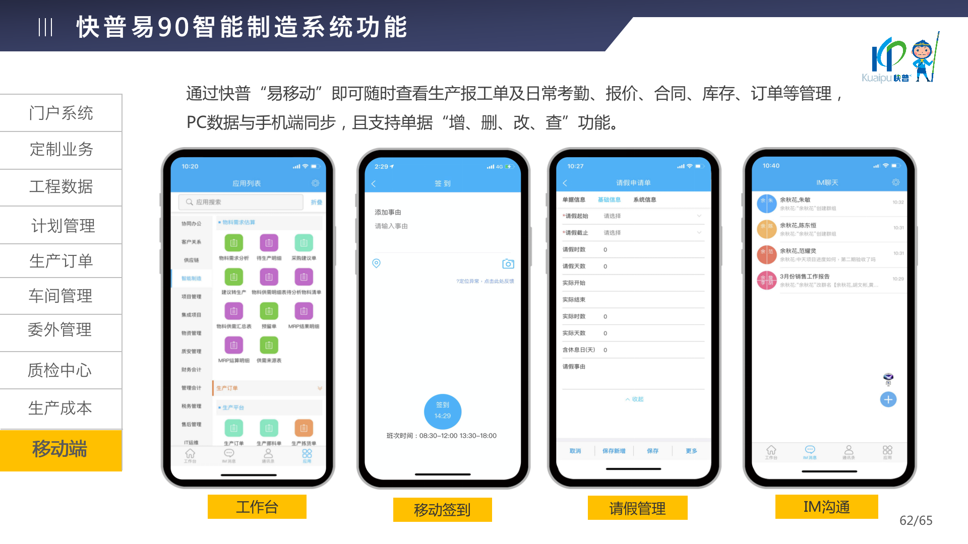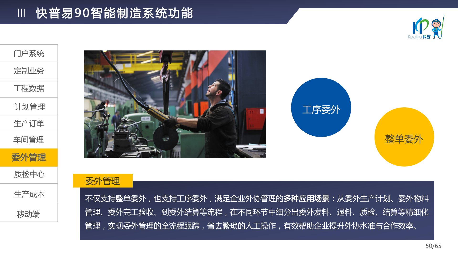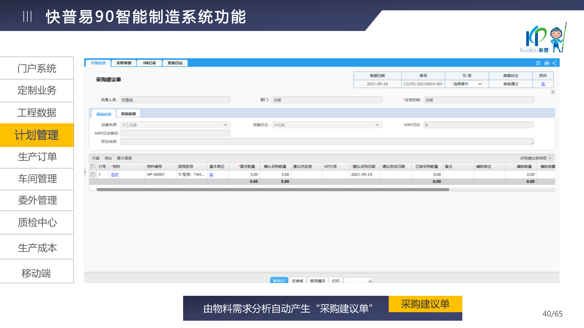 快普易90融合了大量精益生產(chǎn)管理的經(jīng)驗(yàn),涵蓋計(jì)劃管理、BOM管理、MRP運(yùn)算、生產(chǎn)訂單管理、供應(yīng)鏈管理、車間管理、出入庫管理、委外管理、質(zhì)量管理、生產(chǎn)成本核算、報(bào)表分析等全面生產(chǎn)管理,為企業(yè)打造實(shí)時(shí)感知變化、分析變化、提供決策的數(shù)字化管理平臺,推動(dòng)企業(yè)創(chuàng)新的管理,實(shí)現(xiàn)“智能制造”的數(shù)字化轉(zhuǎn)型。