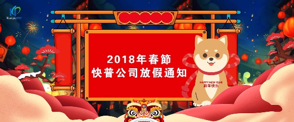 2018年春節(jié)來臨之際,依據《國務院辦公廳關于2018年部分節(jié)假日安排的通知》以及公司福利制度,現將快普公司2018年春節(jié)放假時間公布,我們將合理安排相關的準備工作、值班事宜,請廣大客戶及合作伙伴知悉!