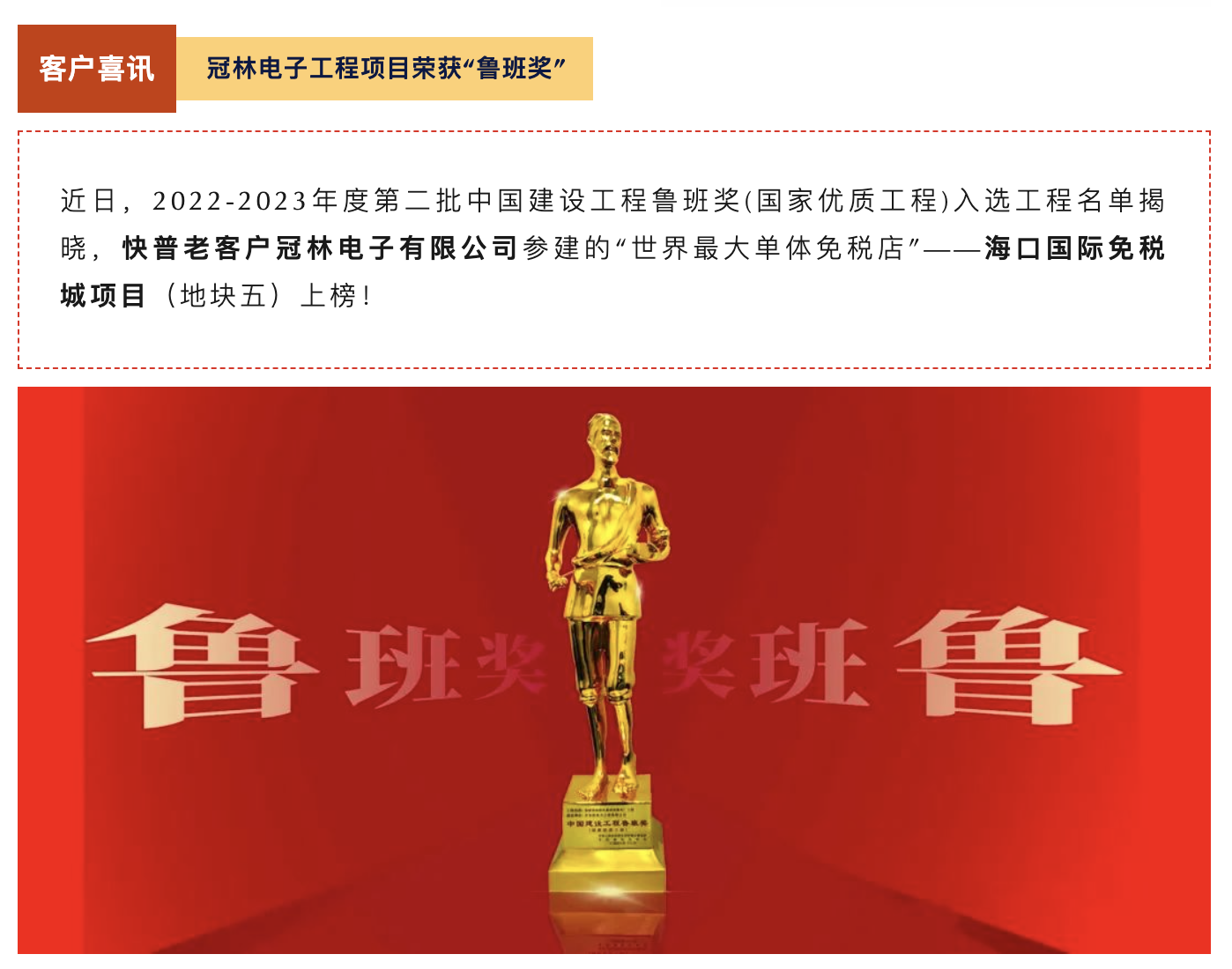 中國建設工程魯班獎(國家優(yōu)質工程)是由中華人民共和國住房和城鄉(xiāng)建設部指導、中國建筑業(yè)協(xié)會實施評選的獎項,是中國建筑行業(yè)工程質量最高榮譽獎,被譽為中國建筑業(yè)的“奧斯卡”,主要授予中國境內已經(jīng)建成并投入使用的各類新(擴)建工程,且工程質量應達到國內領先水平。